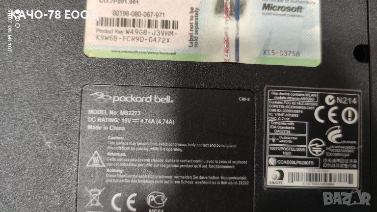 Лаптоп Packard Bell MS2273 → Обява 41874604