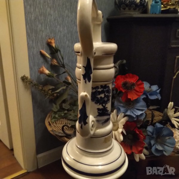 Много красива и детайлна холандска порцеланова помпа чешма на делфт .Имаше хартиен печат за произход но падна при чистене. Висока е 40 см.Ширина приблизително 23см.Основа 17 см.Страхотна на живо.Съвсем леки забележки по гланца 3 или 4 незабележими.Крайна цена