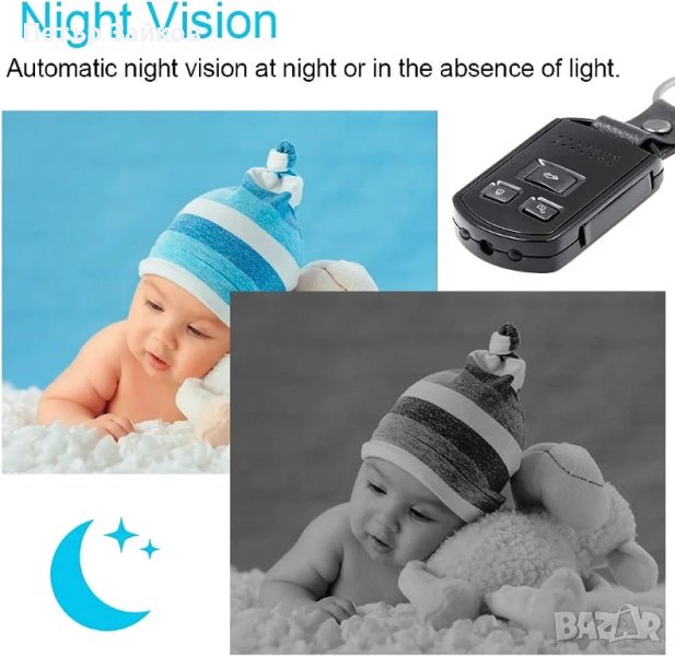 Уникален дизайн, HD резолюция. Тази преносима система съдържа аудио и видео записваща камера, записва 1920*1080P HD видео, изображението е повече от 12 милиона пиксела, което ви позволява да видите всеки детайл.Мини диктофон. Камерата m също е лесен за употреба шпионски аудио рекордер. Неговият уникален дизайн ви позволява да го носите на конференции или преговори всеки ден, така че една-единствена дума да ви убягва.Нашата камера с ключодържател с подобрено откриване на движение, след активиране на този режим, тя ще записва само при откриване на движение, което улеснява спестяването на място за съхранение в сравнение с други мини камери.Функцията за нощно виждане е една от важните характеристики на тази камера за автомобилен ключ, с помощта на инфрачервени светлини, прикрепени към камерата, тя може да записва ясно видео дори през нощта или при условия на слаба светлина.Многофункционална акумулаторна камера. Позволява ви да записвате видеоклипове, докато ги зареждате с променливотоков адаптер или захранване, да правите снимки, когато пожелаете, и тази преносима камера поддържа разширяване на паметта до 32 GB в максимум (не е включена).