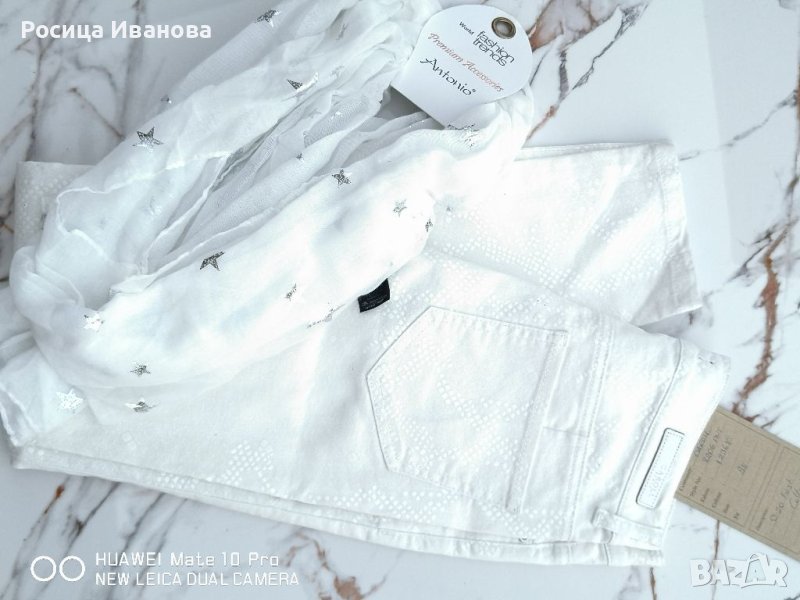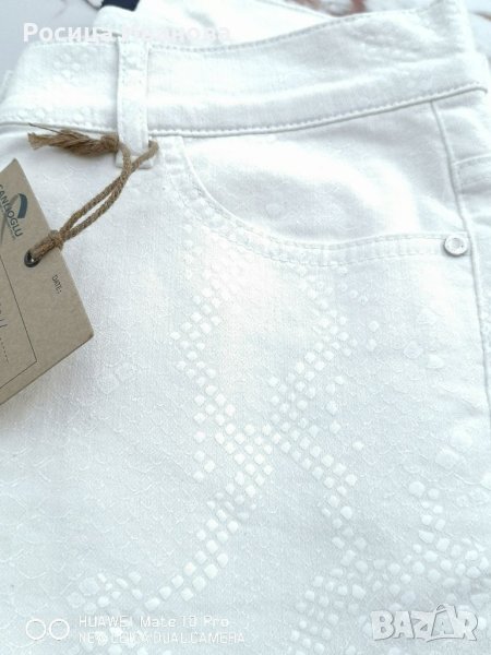 Нови бели панталони, слим модел. Плата е релефен и изключително качествен.