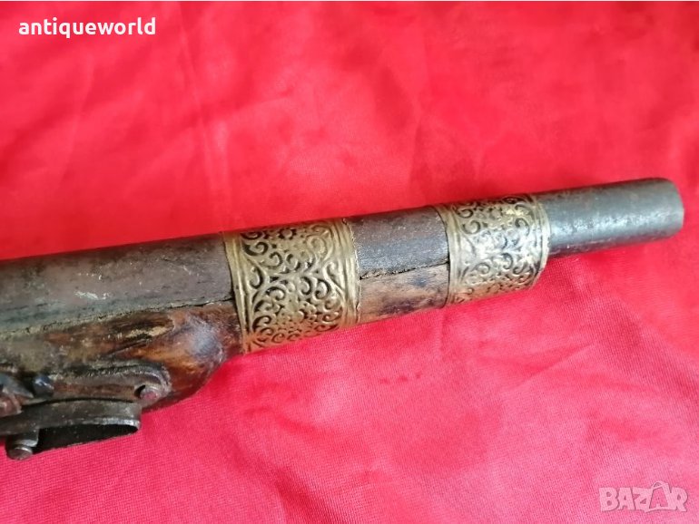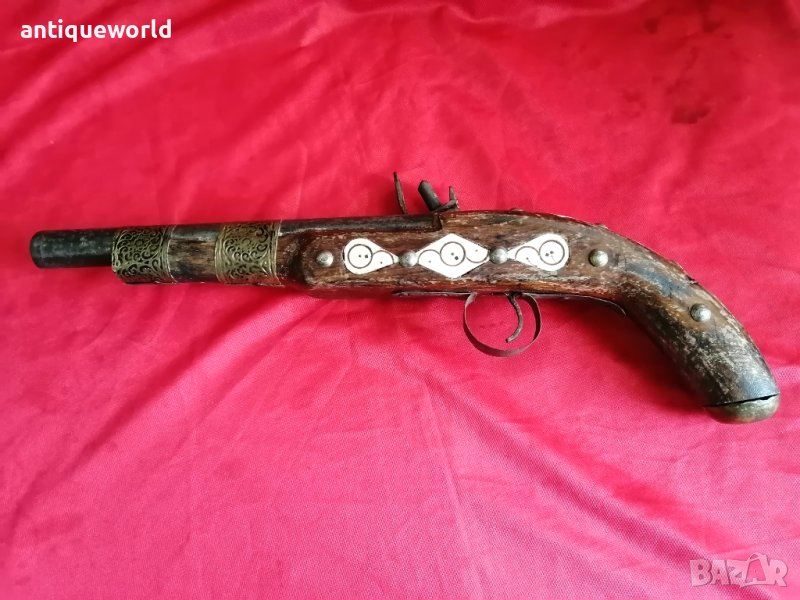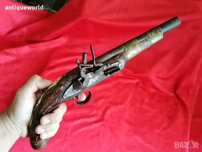 Стар Кремъчен Пищов , Пистолет, Кремъклия. Зарежда и щрака. Стара репика .Подходящ за възстановки , колекция , декорация за механа.