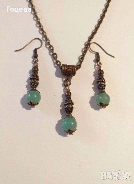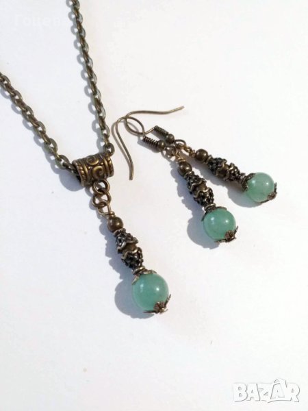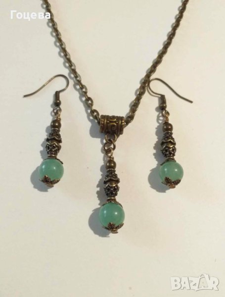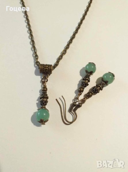 Разкошен комплект бижута обеци и колие с Нефрит и красиви орнаменти цвят Античен бронз → Обява 41882660