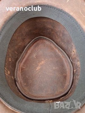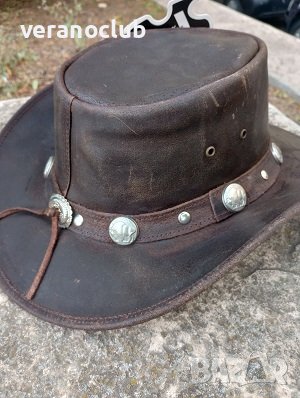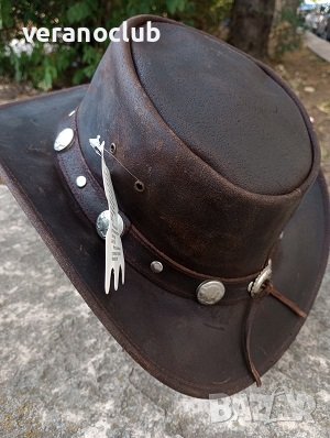 Автентична Австралийска шапка от естествена кожа - buffalo leather, кожа от биволска крава, която се характеризира с изключителна здравина и комфорт. Провокативно предложение от необятната австралийска шир. Цвят на шапката - тъмнокафяв.
