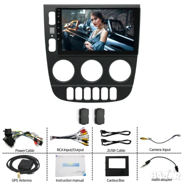 Пълен комплект с цялата рамка, преходни кабели и букси, декодери, предназначени и съвместими за монтиране на конкретния модел автомобил.