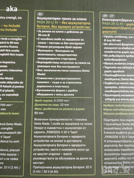 PARKSIDE Акумулаторен Трион За Клони и корени PASA 20- Li A1 НОВ 2 Г. ГАРАНЦИЯ