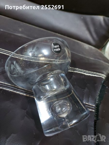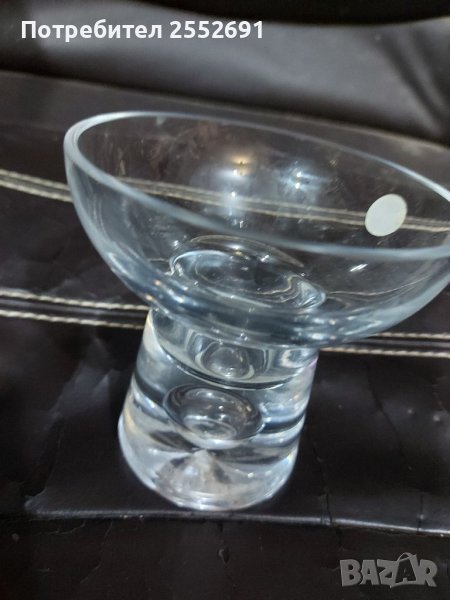 Масивен, стъклен свещник- hand made. Наличие на фирмен знак. Височина- 10,5см.