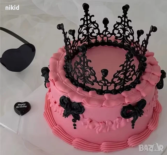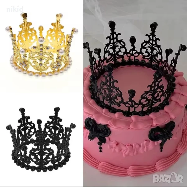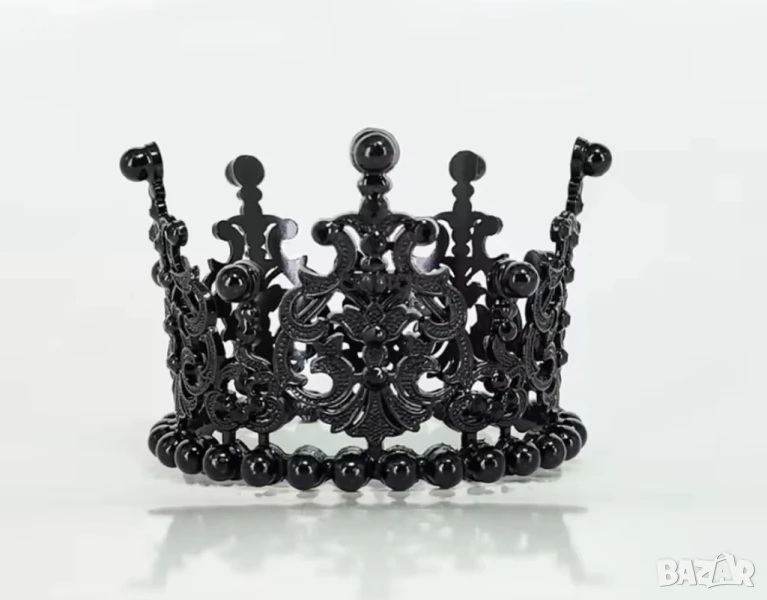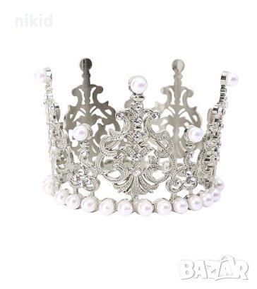 средна сребриста златиста черна корона Тиара с перли и камъчета метална за украса декор торта парти → Обява 41886438