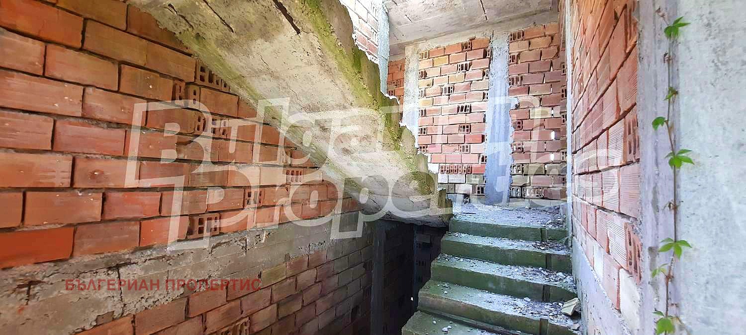 Къщата е на два етажа, с РЗП 342 кв.м. Изградена е на етап избен етаж и първи жилищен. Изпълнени са две подови плочи, колони, греди и стени до подова плоча на втори етаж. Сградата няма покрив, няма дограма, не са изградени Ел. и ВиК инсталации.