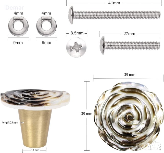 Покритите с перли копчета от миди и рози са идеални за нощно шкафче, скрин, гардероб, шкаф и други мебели.