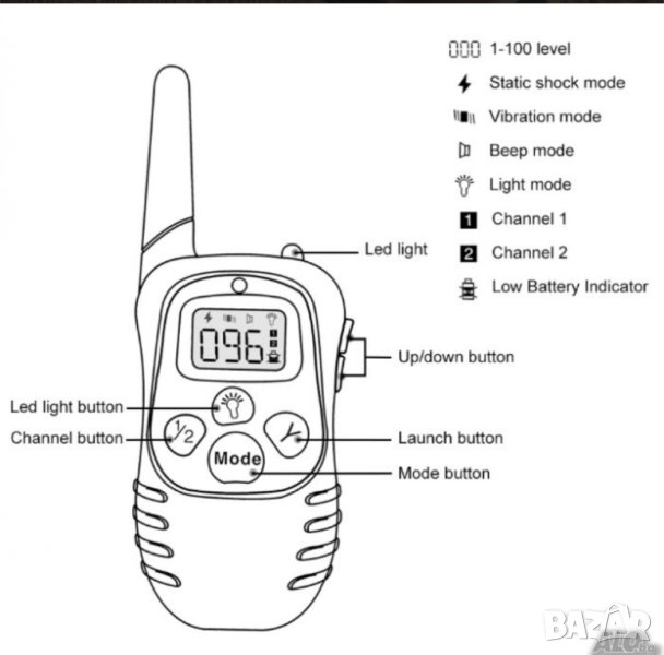 Продукта е нов! -С вградени литиево-йонни батерии; -Комплект за едно куче- 32 EUR. -Комплект за две кучета- 47 EUR. Продават се и отделни елементи от комплекта; -Приемник с каишка с два вида накрайници-15 EUR. -Дистанционно -15 EUR. -Зарядно-6 EUR. -Продуктът се използва най - често за дресура на ловни кучета. Най-добрият и ефикасен начин да научете вашето куче на вашите команди. Нашийникът разполага с: - Вибриращ сигнал (вибрация) - Звуков сигнал (възпроизвеждане на звук от нашийника) - Светлинен сигнал (възпроизвеждане на червена светлина от нашийника) - Шоков сигнал (ток) - Фенерче (ако теренът е тъмен) Всичко това със 100 нива за регулиране на силата на сигналите. Целта на продуктът не е да наранява кучето а да му покаже, чрез страненза него сигнал, че прави нещо нередно и трябва да чуе командата. Разполагате с два вида накрайници: - за късокосмести - за дългокосмести Обхвата между дистанционното и нашийника е до 300 метра (в зависимост от терена - дървета, храсти и стени). -Удароустойчив -Водоустойчив. Изпращам чрез фирма Еконт Експрес с опция за преглед и тест Комплектът съдържа: дистанционно, нашийник, накрайници: за късокосмести, за дългокосмести, 1бр тестова лампичка (за тест на каишката) 1бр ръководство(Английски), Зарядно устрйство. Ето и линкhttps://www.youtube.com/watch?v=S0AOfbjypoIТук може да видите как да изпробвате устройството.