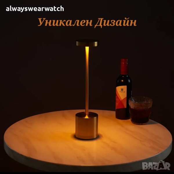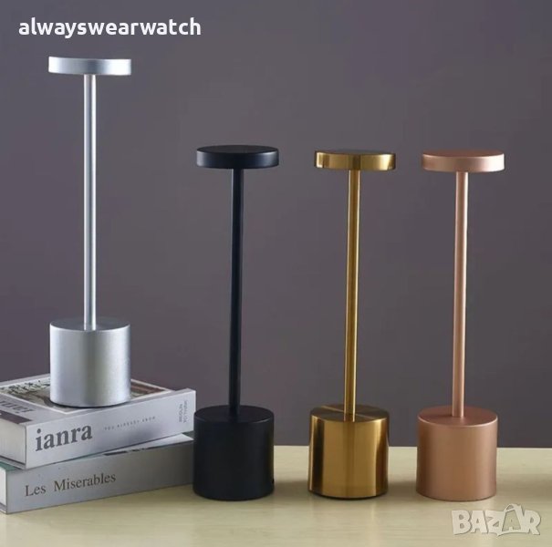 Преносима метална [алуминиева сплав] акумулаторна безжична LED настолна лампа.