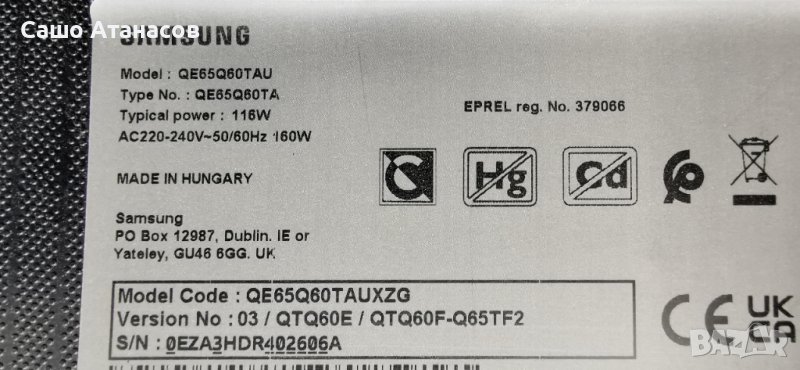 SAMSUNG QE65Q60TAU счупена матрица ,BN44-01059A ,BN41-02756C ,CY-RT065HGSV1H ,WCT730M ,BN94-16148S