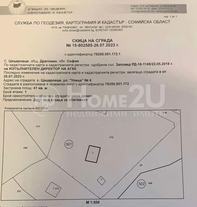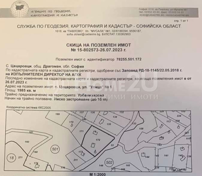 ЦЕНА БЕЗ АНАЛОГ!!! СПОКОЙСТВИЕ И ЧИСТ ВЪЗДУХ!!! Хоум ТУ Ю представя парцел с две къщи, на 40 мин. от гр.София, във вилната зона на с.Цацаровци, община Драгоман, на 20 Мин от Сливница. Ако искате да избягате от забързаното ежедневие, това е Вашето място ! За да запазите час за оглед, обадете се сега и цитирайте този код: 89778