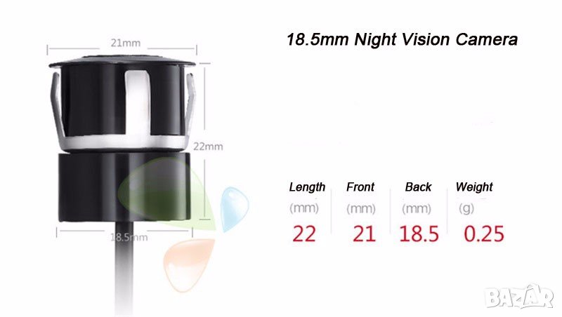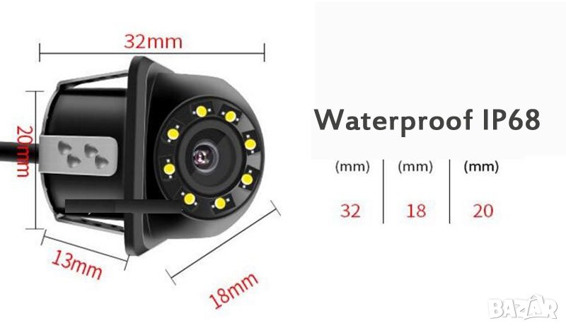 За 6 Метра Видео кабел за свързване към монитор + 1 метър захранващ кабел 12/24V за захранване от светлините за заден ход за камерата се доплащат + 8.99 лева