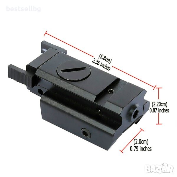 Компактен лазерен мерник с червена точка пикатини уивър база за монтаж на релса 20 мм