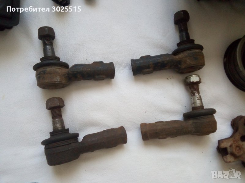 Накрайници и шарнир. Два леви и два десни. Единия е разбит. Трите са здрави. Шарнира е здрав със скъсан гумен маншон. 10лв бройката.