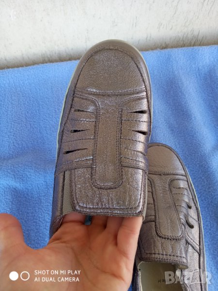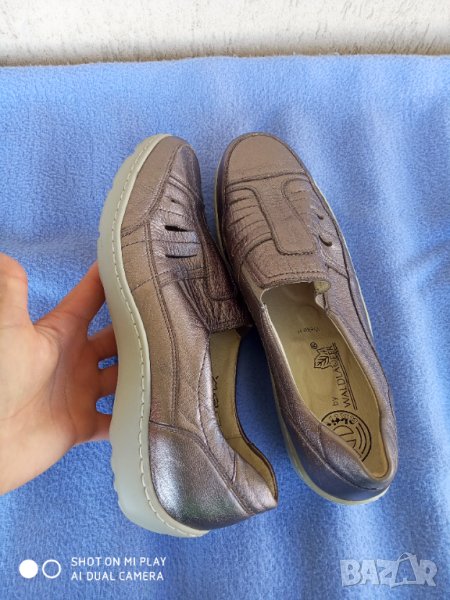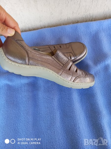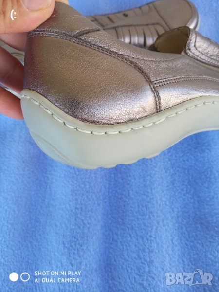 Обувките са обувани един,два пъти.Като нови са, в отлично състояние са.Изработени са от мека естествена кожа.Много качествена и скъпа марка.Ще ви служат дълго време.Цвят месинг.Номер 39 с дължина на стелката 25,5 см.Цена 48лв.