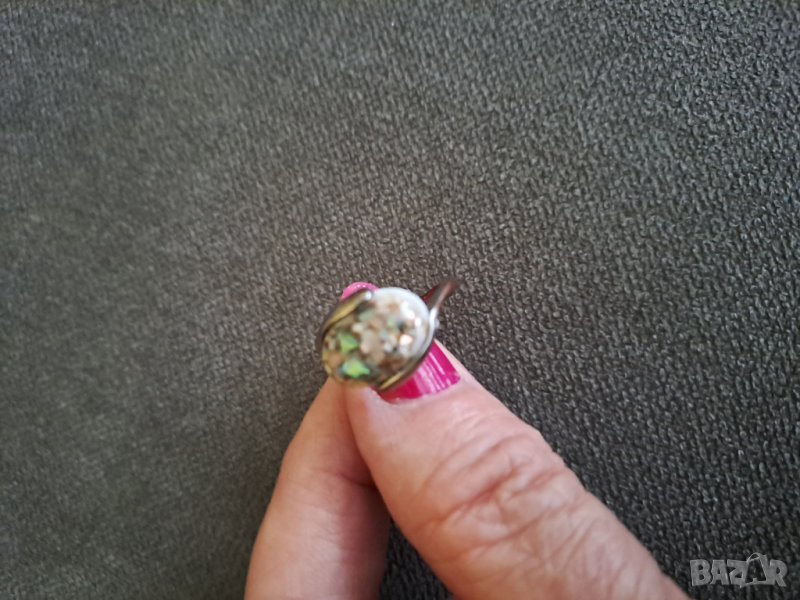 Дамски пръстен с инкрустирани цветни седефчета, малък размер. Отговарям на съобщения тук, изпращам с куриер с отстъпка, преглед и тест, или лично предаване в София.