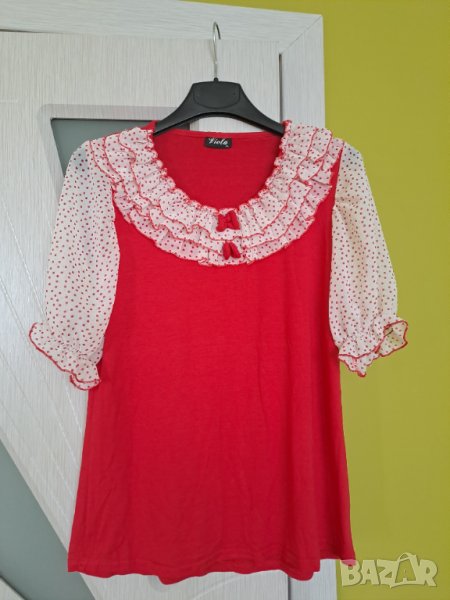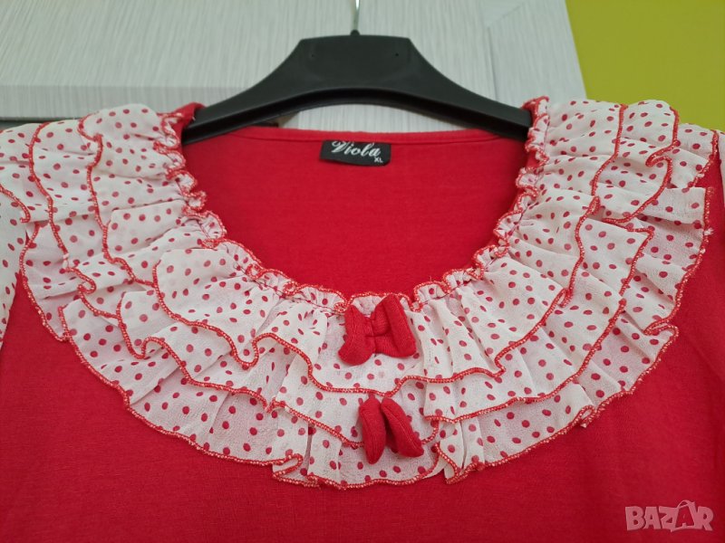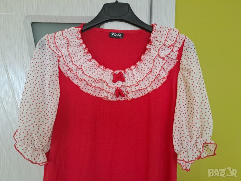 Дамска блуза червена с къдрички на точки Viola → Обява 41896485