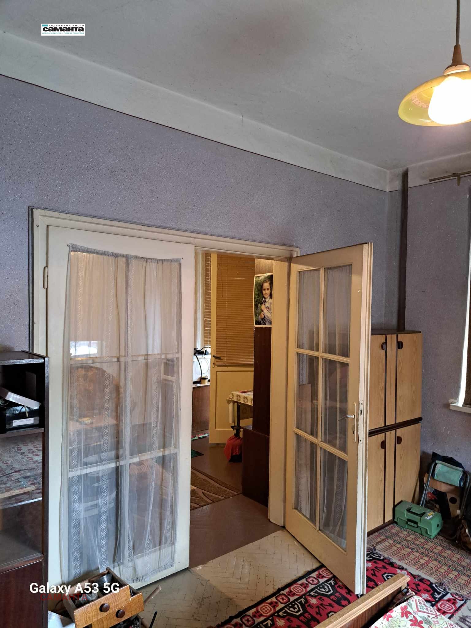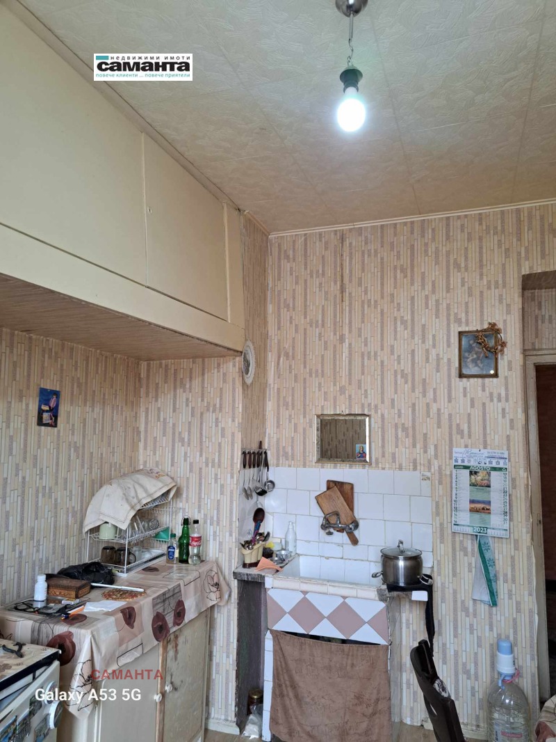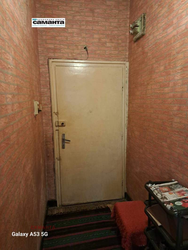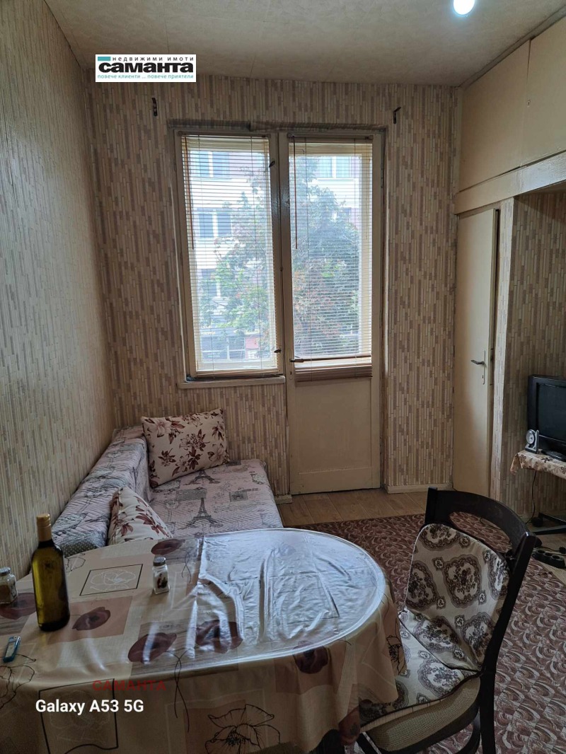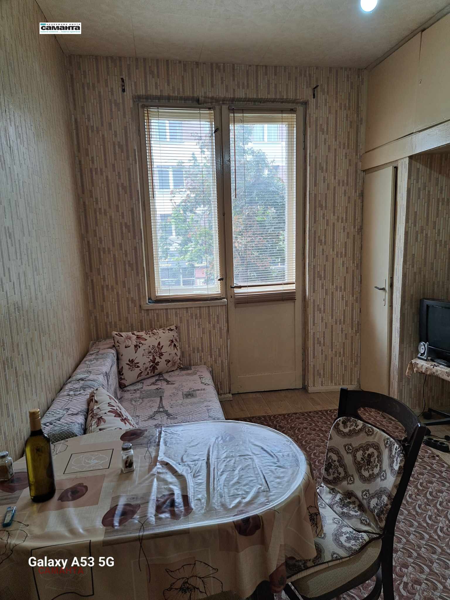 Апартамента се намира в квартал'Славянски'.Изложението му е запад-юг.Разполага с две стаи и кухня,две тераси към стаите,в добро състояние.Към имота се полагат таванско помещение и мазе.