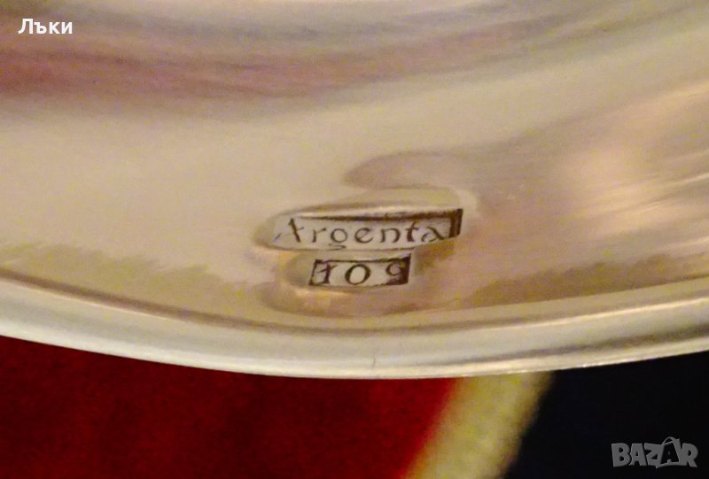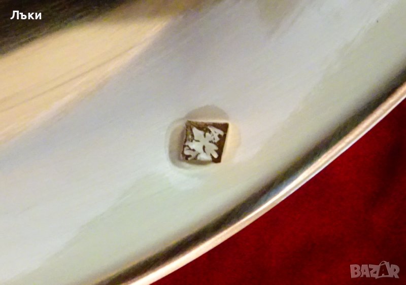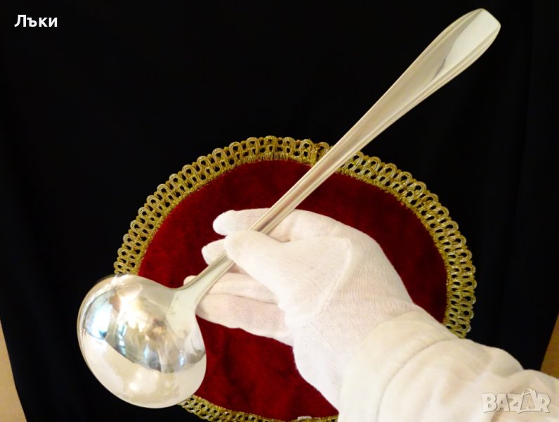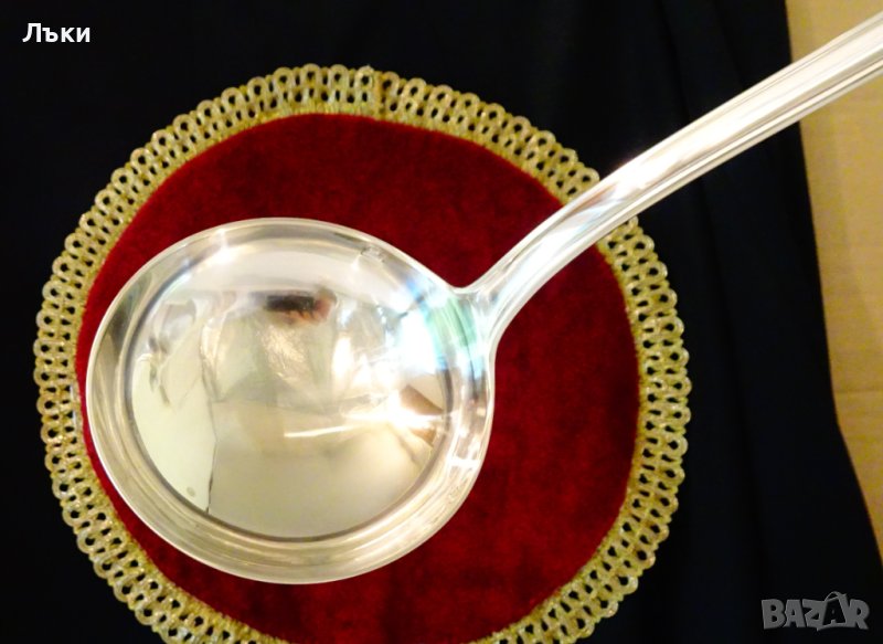 посребрен с висока проба сребро,маркиран с два знака.Дръжката е релефно декорирана в стил Art Deco.Височина 33 см.,диаметър на черпака 9.5 см.,тегло 230 гр.