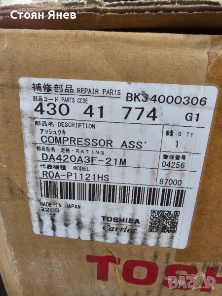 Хладилен компресор Toshiba S-DA420A3F-21M , снимка 1 - Други машини и части - 41901349 Хладилен компресор Toshiba S-DA420A3F-21M , снимка 2 - Други машини и части - 41901349 1/2