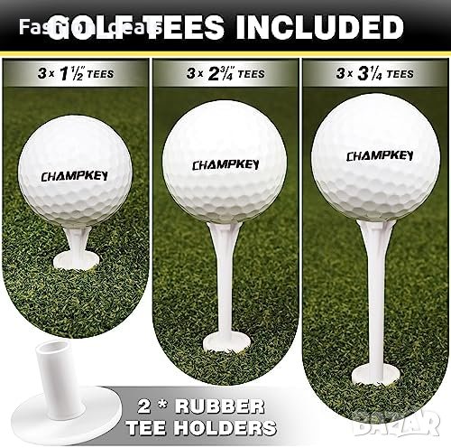 Включва 1 * постелка за голф PATHGUIDER. 2* гумени държачи за тройници. 3 * 38 мм пластмасови тройници, 3 * 70 мм пластмасови тройници, 3 * 83 мм пластмасови тройници.