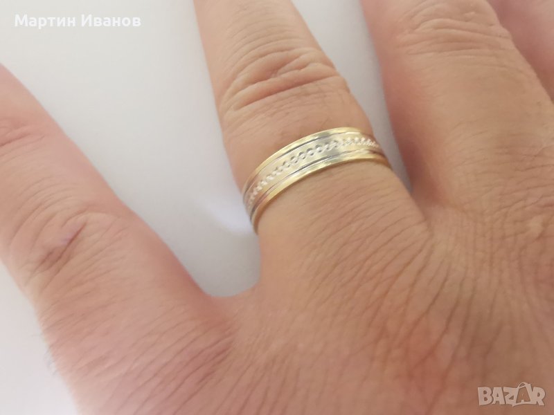 Златна халка бяло и жълто комбинация, 14к, 585пр, 2.85гр, вътрешен диаметър 19мм, размер 60 мярка