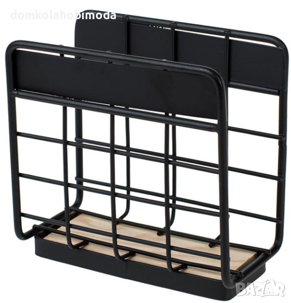 Описание - Характеристики Салфетник, черен метал с дървена основа и мрежест дизайн.