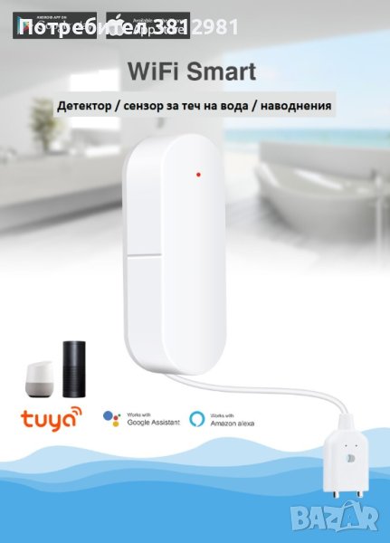 Tuya WiFi Сензор за изтичане на вода, Смарт Детектор за предупреждение за наводнение, защита на сигурността на дома чрез Smart Life. Изключително полезен в случаи, когато водоснабдяването е спряно, забравяте да затворите крана и излизате. Когато деца си играят с водата и оставят крана отворен. При спукване на водопроводна тръба, когато ви няма. Повреди в уреди като перални,