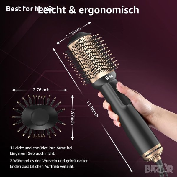 Четката с горещ въздух е малка и лека, така че ръката да не се уморява след продължителна употреба. Дизайнът за защита от изгаряне в горната част гарантира, че няма да изгори по време на употреба.