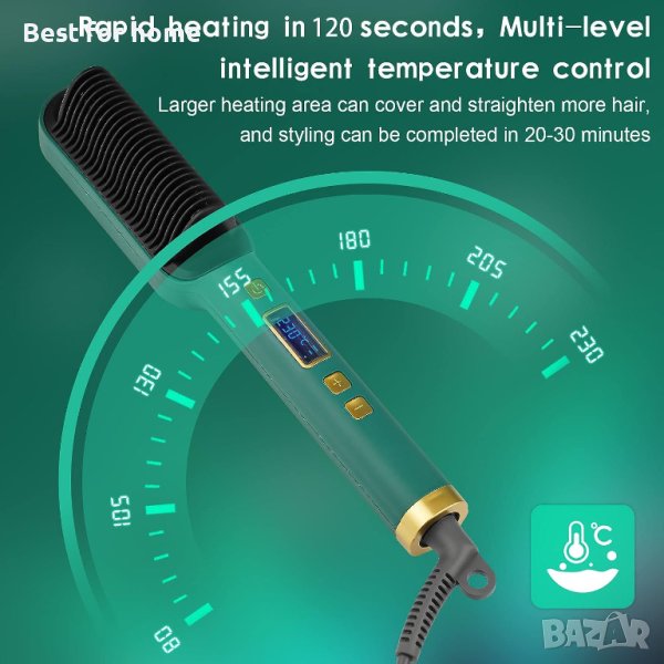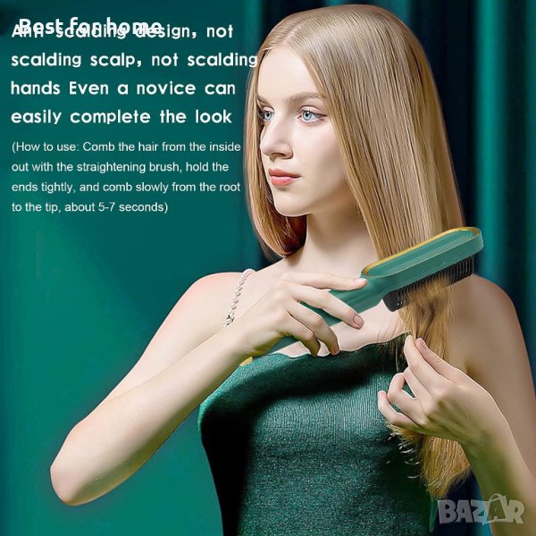 [Икономия на време, добър ефект на изправяне]-- Бързо нагряване за 120 секунди, 3D зъбци на гребена, равномерно нагряване, по-голямата площ на нагряване може да покрие и изправи повече коса, а оформянето може да бъде завършено за 20-30 минути. (Начин на употреба: Използвайте четката за изправяне на косата, за да срешете косата отвътре навън, дръжте здраво краищата и я прокарайте бавно през косата от корена до върха за около 5 до 7 секунди)