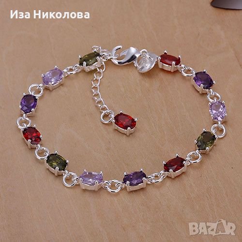 Сребърна гривна със сапфир, смарагд и рубин → Обява 41906860