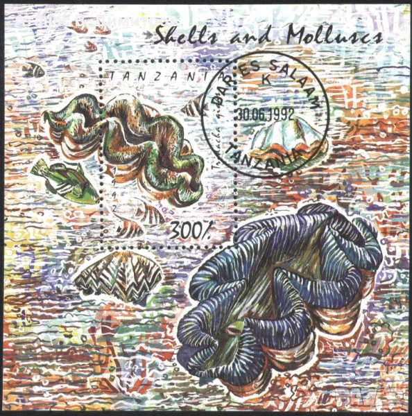 Клеймован блок Морска Фауна Раковини и мекотели 1992 от Танзания.