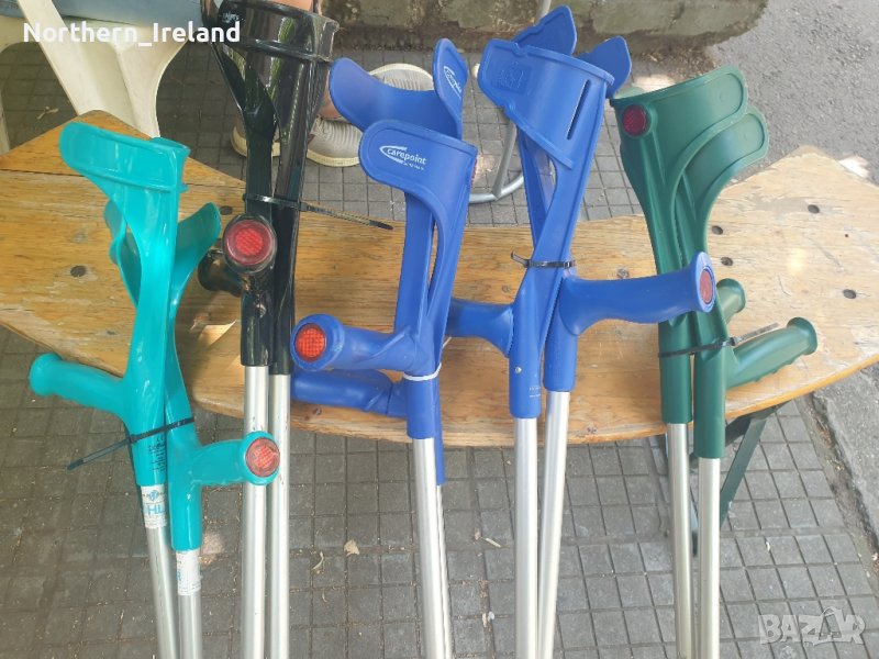 Патерици канадки, немски, регулируема височина, много запазени, максимално натоварване 130 кг. 140 кг. Универсален захват и с захват за лява и дясна ръка,които са много удобни за дланта.Имам и детски патерици - комплект и на брой- ригулируеми и на височина и към лакътя! Максимално натоварване- 100кг