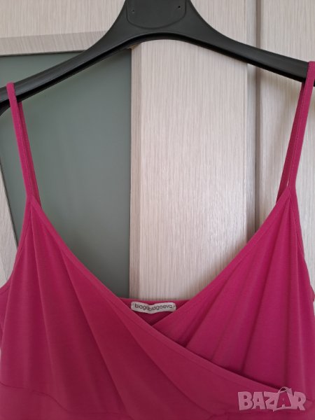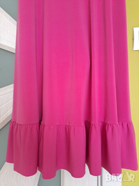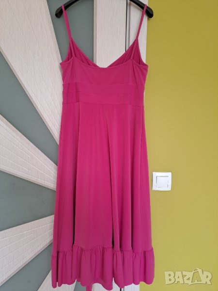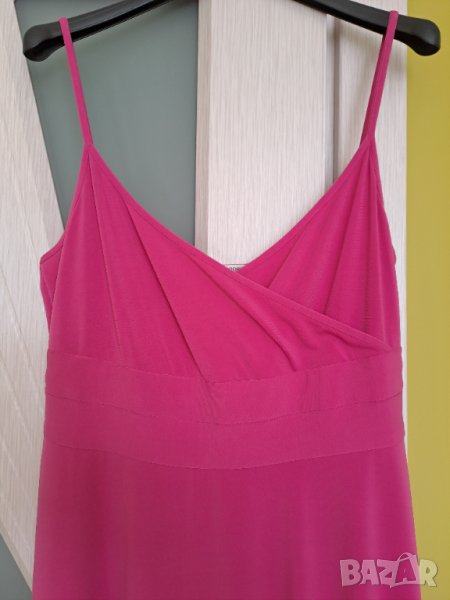 Елегантна рокля с тънки презрамки от моден бутик Blaga Blagoeva. Немачкаема еластична материя с 5 % еластан. Размер S-М, бюст 40-42 см /или обиколка 80-84 см/, под бюста има два реда пристегнат широк вътрешен ластик с ширина 38 см /или 76 см/, надолу се разширява свободно, дължина 112-114 см. Роклята е нова, обличана е еднократно по повод. Отговарям на съобщения тук, изпращам с куриер с отстъпка, преглед и тест, или лично предаване в София.