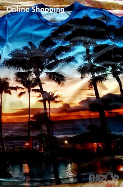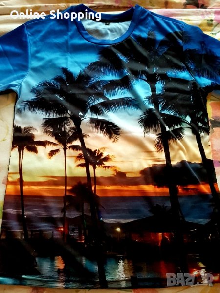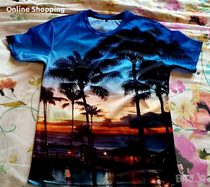 Нова! Мъжка тениска с тропически мотиви тип Бора Бора. Материя полиестер, еластична. по етикет е Л размер, но е по-скоро М.