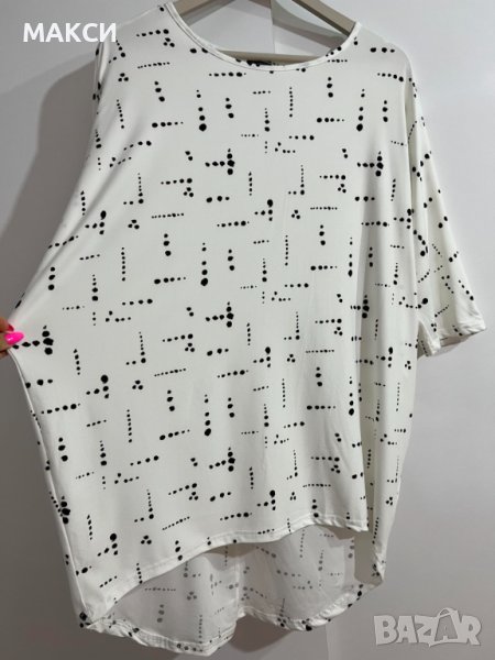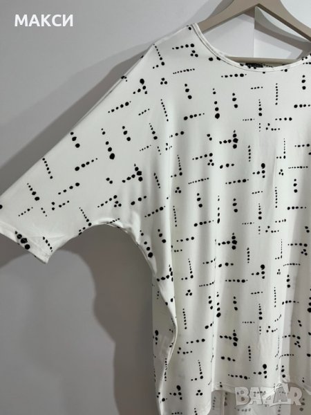 Макси разкошна силно еластична и мека дълга туника с удължен гръб в бяло на черни точки → Обява 41910775