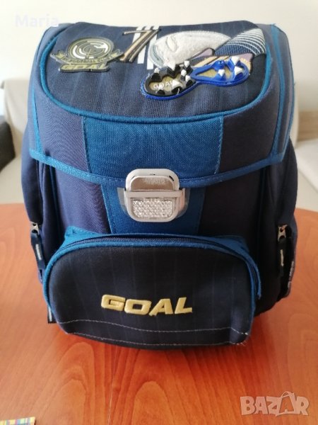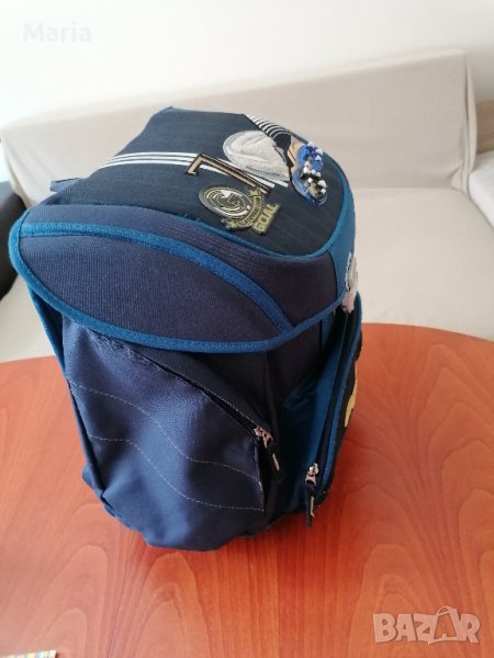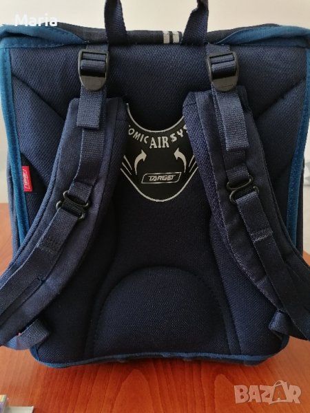 Учиническа раница Target в тъмносиньо. Подходяща за момчета. Анатомичен гръб, твърдо дъно, два странични джоба, преден джоб, вътре голямо отделение с допълнителен джоб и по-малък джоб с цип. Идеална за първокласници! Използвана една година, здрава, с нормални следи от употреба.