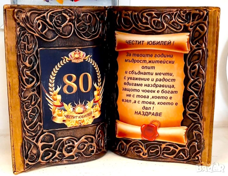 Авторска, ръчно изработена, книга с оригинално пожелание за юбилей 80 години.
