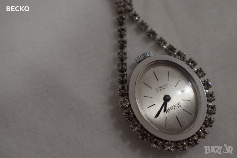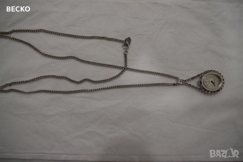 Колие с висулка часовник .Часовника е механичен на марката Siluett .Работещ ,в добро състояние .Много красив и изискан.Продава се комплект със синджирчето .