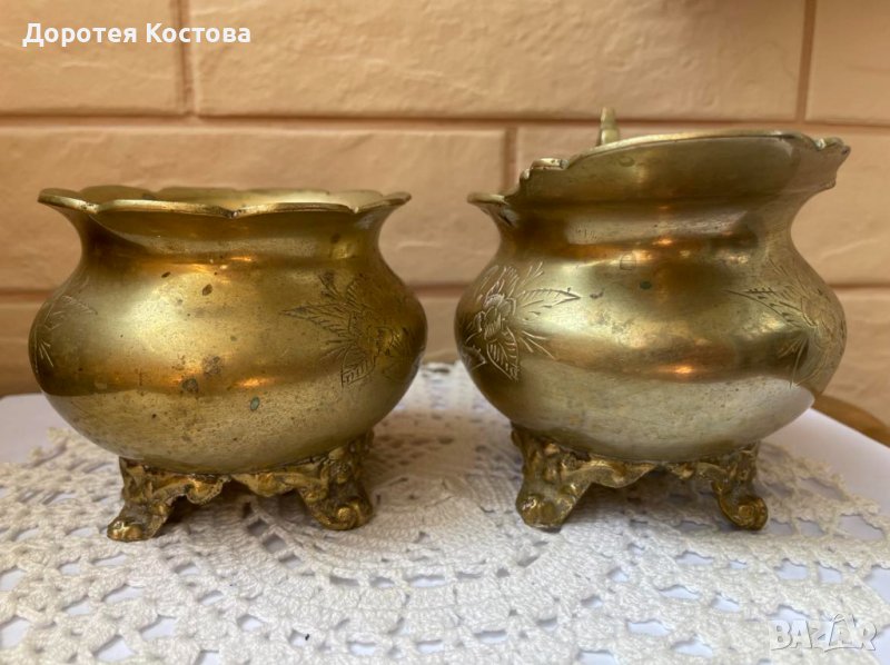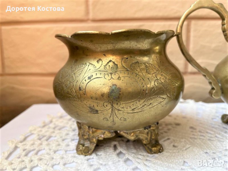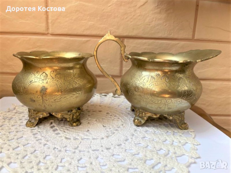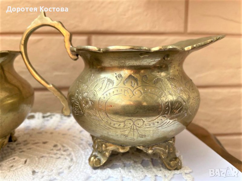 Прекрасен комплект от латиера и захарница от месинг, с маркировки от Англия → Обява 41914382