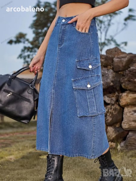 Дамска дънкова карго ежедневна миди пола с еластична талия, 2цвята