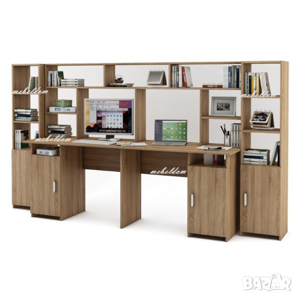 Бюро 208см. с надстройка за двама и 2 етажерки с плавни врати(код-0936)