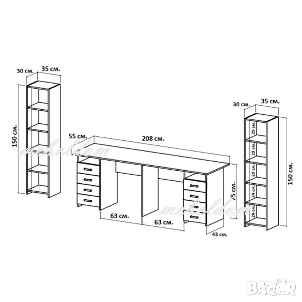 размери на бюро: 208 / 55 / височина 75см.(виж схемата)