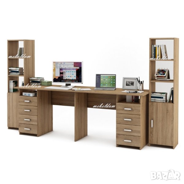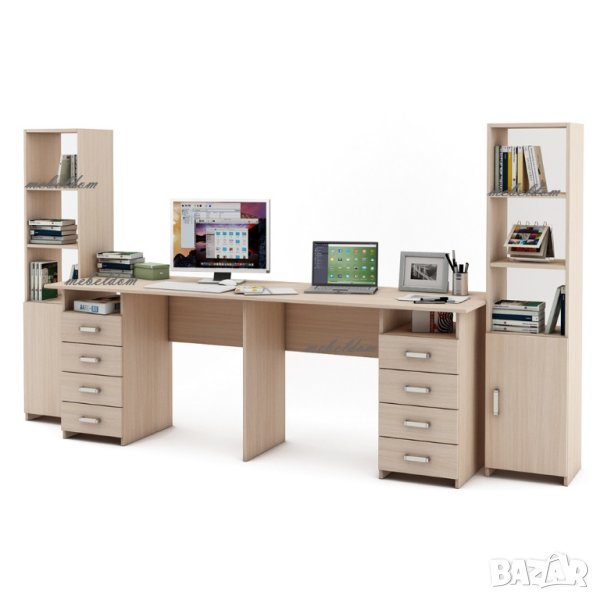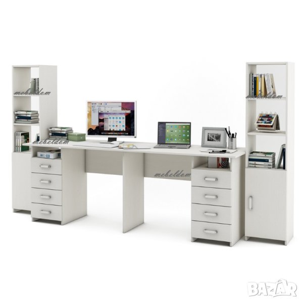 Бюро 208см. за двама със 8 чекмеджета и 2 етажерки с плавни врати(код-0939)