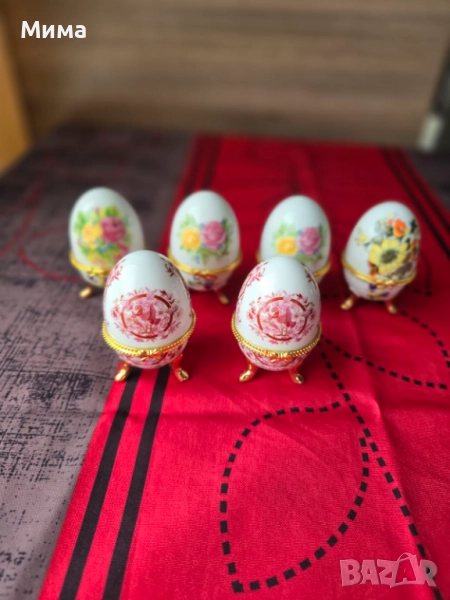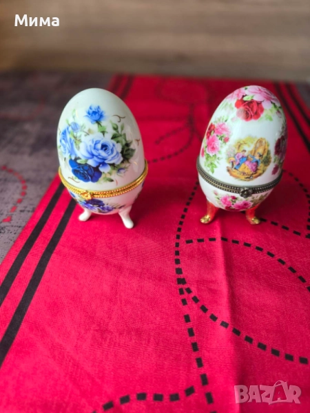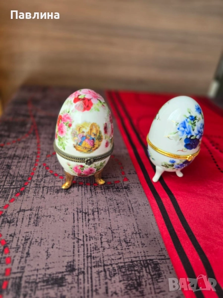 Нови порцеланови бижутерки. Квадратните са с размери 7/7 см. Яйцата са с височина 8 см. Нямат маркировки. Цена за брой 15 лева
