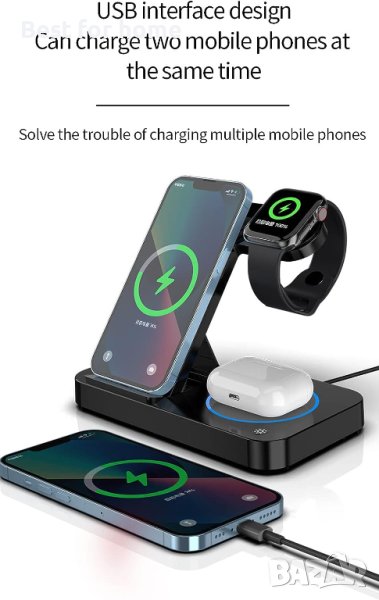 4 в 1- жично и безжично рзареждане на телефони- всички модели които поддържат функция за безжично зареждане. Андроид и Айпъл;
