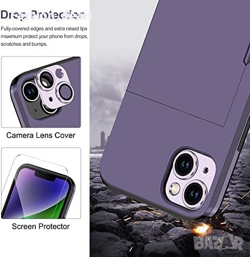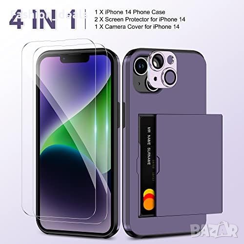 За iPhone 14 с държач за карта и 2 протектора за екран + 1 протектор за камера
