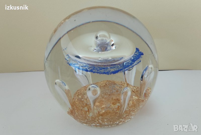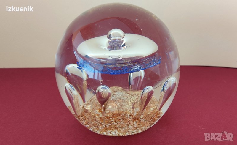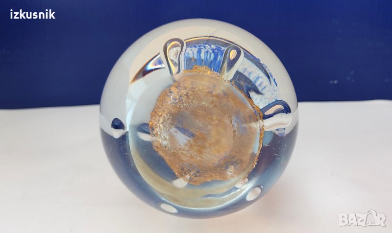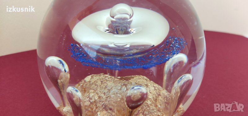 Вълшебно кристално кълбо. Дали прави вълшебство, не знам, но е вълшебно красиво. Масивно и тежко. Ръчна, английска изработка. 3D фигурални ефекти, с бляскави цветови акценти в синьо и златисто, вътре в кристалното тяло.